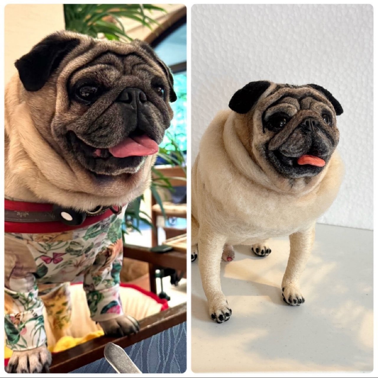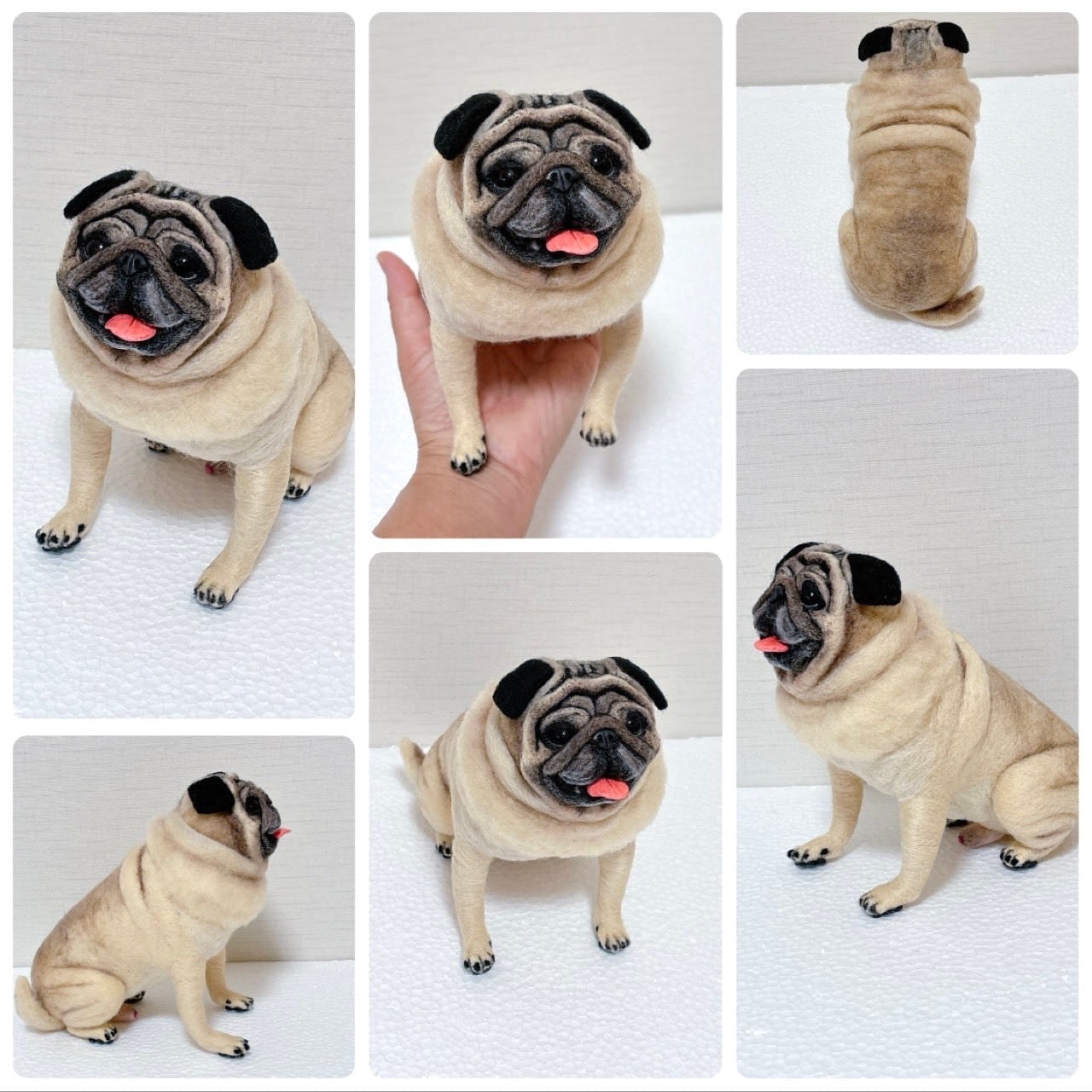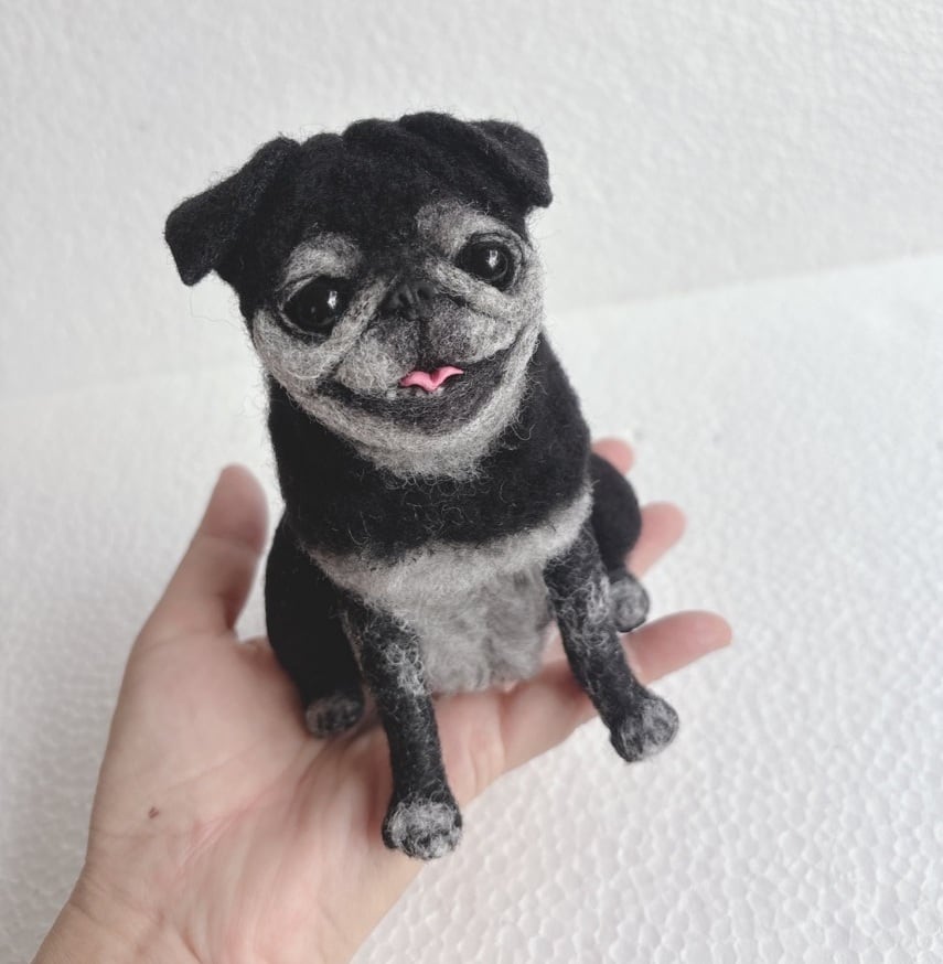 I began teaching myself in July 2019 how to create pugs out of wool felt .